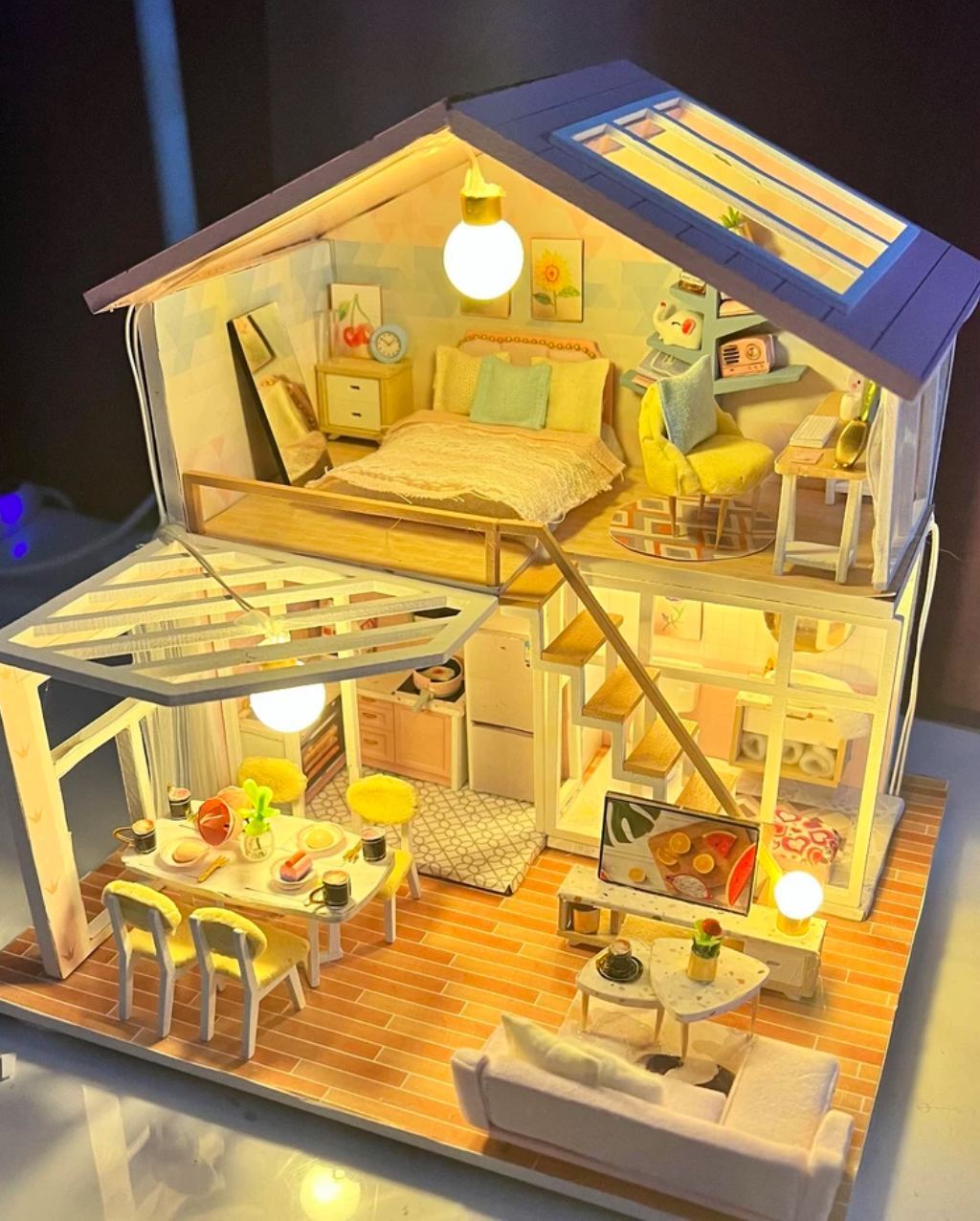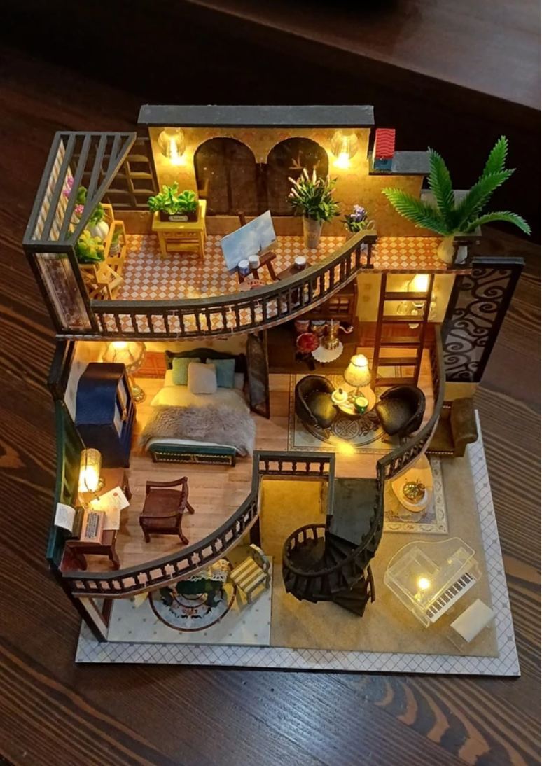 хобі-конструктор лялькового будиночка. Це набір з різними деталями інтер'єру та меблів, які потрібно зібрати і тоді у вас вийде повноцінний ляльковий будиночок. У комплектацію входять, окрім деталей для складання, інструменти такі, як клей, ножиці, лінійка і т.д. Після складання Ви помітите, що будиночок дуже детально продуманий і схожий на справжній. Всі деталі дрібні і дуже реалістичні. Складання будиночка дасть вам змогу розслабитися і провести час із користю.