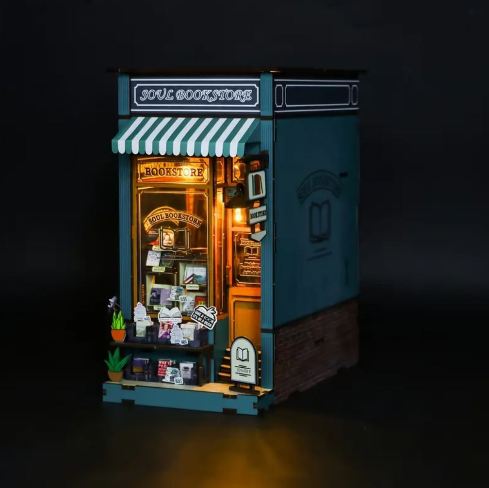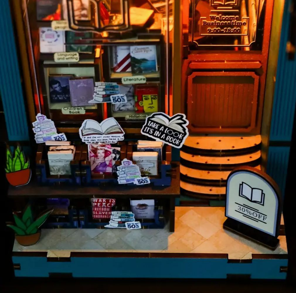 Цей мініатюрний книжковий куточок, також відомий як "набір мініатюрних будинків" або "мініатюрні сцени на книжковій полиці", перетворює ваші книги на частину дивовижного світу. Розмістіть його між книгами, щоб створити яскраву сцену, яка принесе у вашу оселю атмосферу дива та творчості. Головне це світ, який ви створюєте своїми руками!