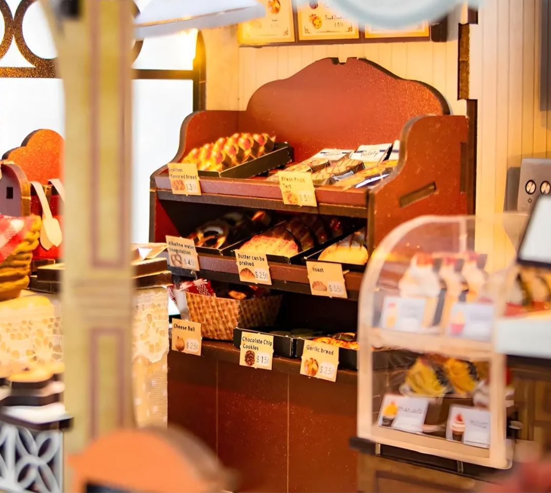 У самому румбоксі є всі деталі пекарні: мініатюрні меблі, полиці, вітрини, хліб і тістечка виглядають надзвичайно правдоподібно — це не просто модель, а справжня декоративна композиція. Такий румбокс буде чудовим подарунком на будь-яке свято!