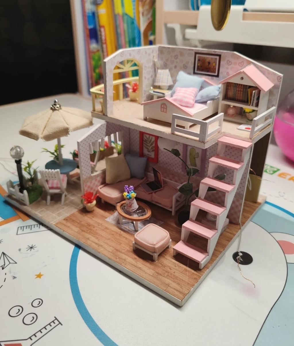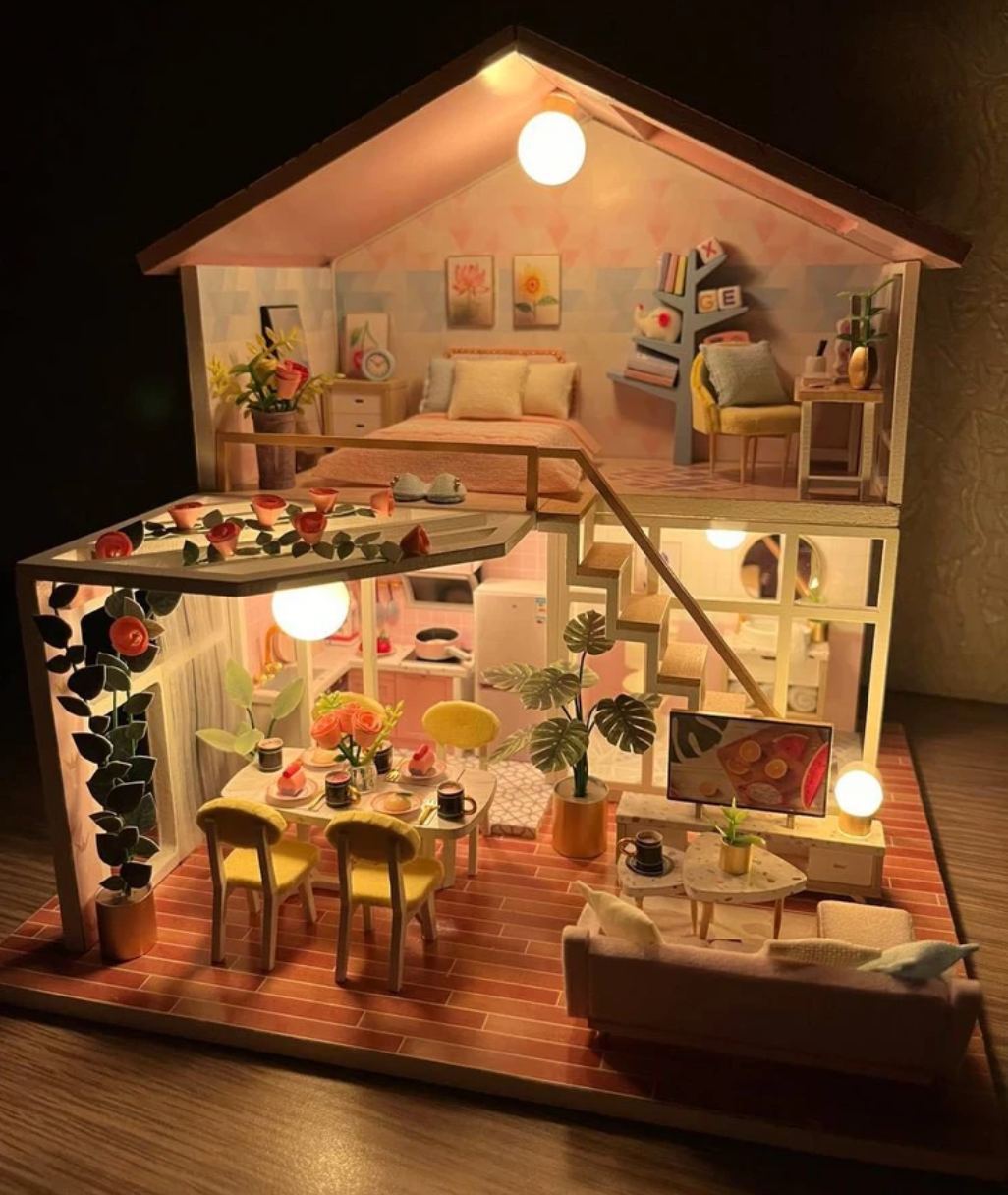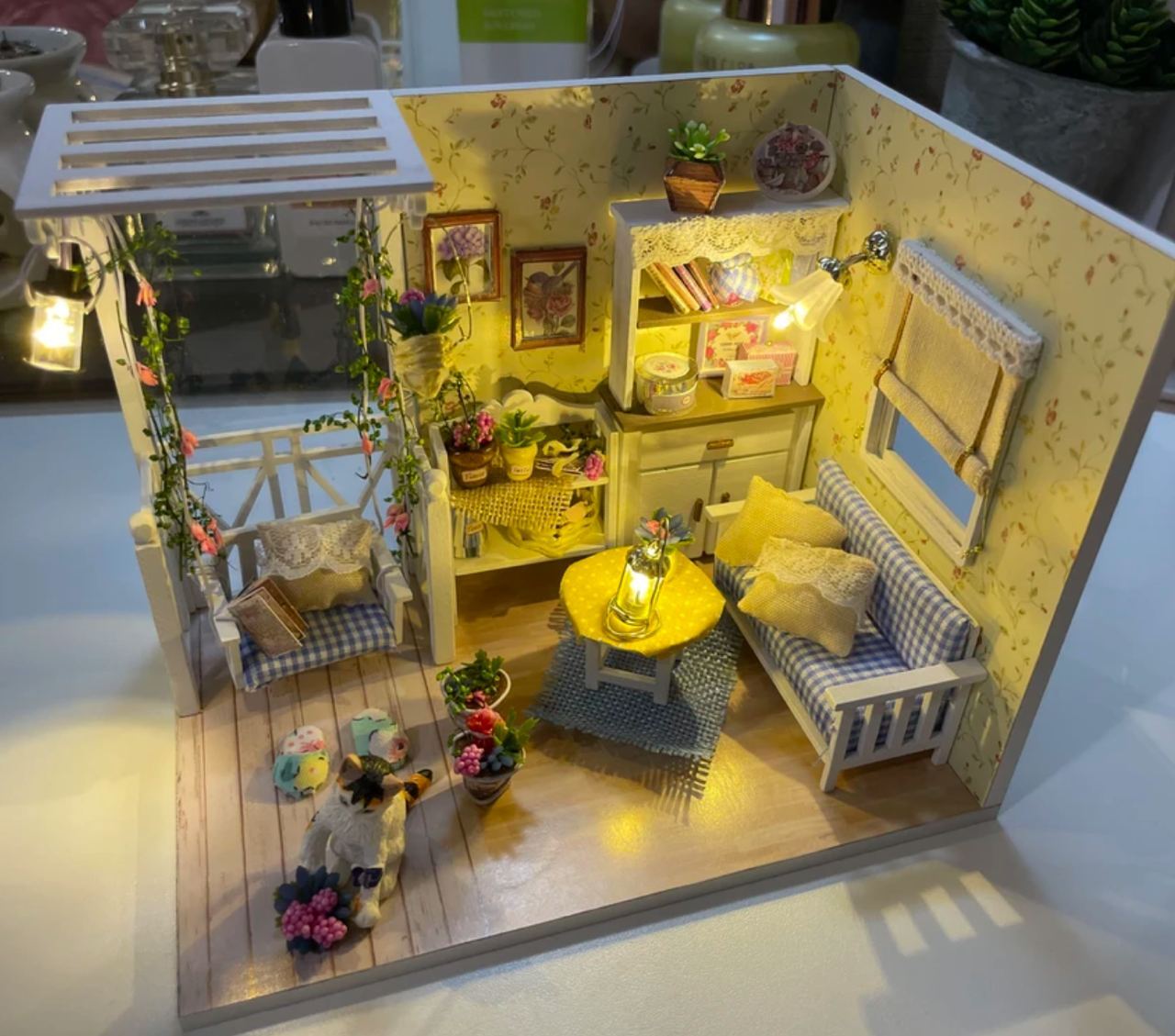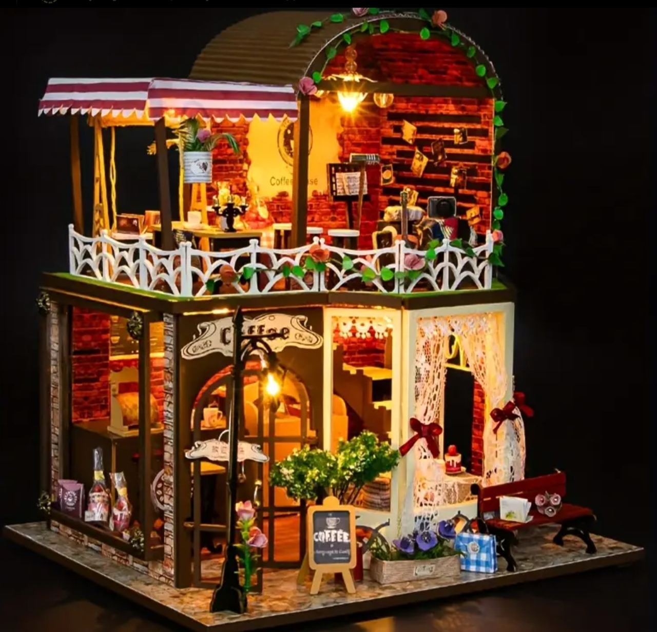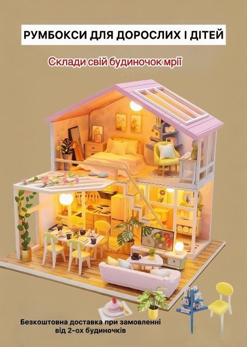 хобі-конструктор лялькового будиночка. Це набір з різними деталями інтер'єру та меблів, які потрібно зібрати і тоді у вас вийде повноцінний ляльковий будиночок. У комплектацію входять, окрім деталей для складання, інструменти такі, як клей, ножиці, лінійка і т.д. Після складання Ви помітите, що будиночок дуже детально продуманий і схожий на справжній. Всі деталі дрібні і дуже реалістичні. Складання будиночка дасть вам змогу розслабитися і провести час із користю.