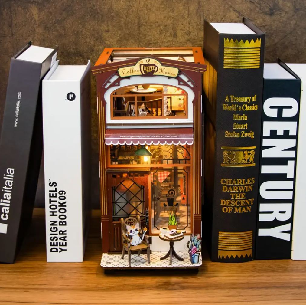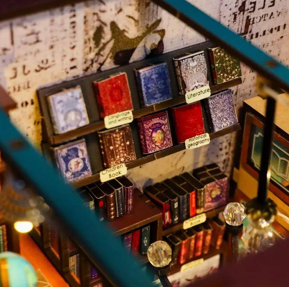 Цей мініатюрний книжковий куточок, також відомий як "набір мініатюрних будинків" або "мініатюрні сцени на книжковій полиці", перетворює ваші книги на частину дивовижного світу. Розмістіть його між книгами, щоб створити яскраву сцену, яка принесе у вашу оселю атмосферу дива та творчості. Головне це світ, який ви створюєте своїми руками!